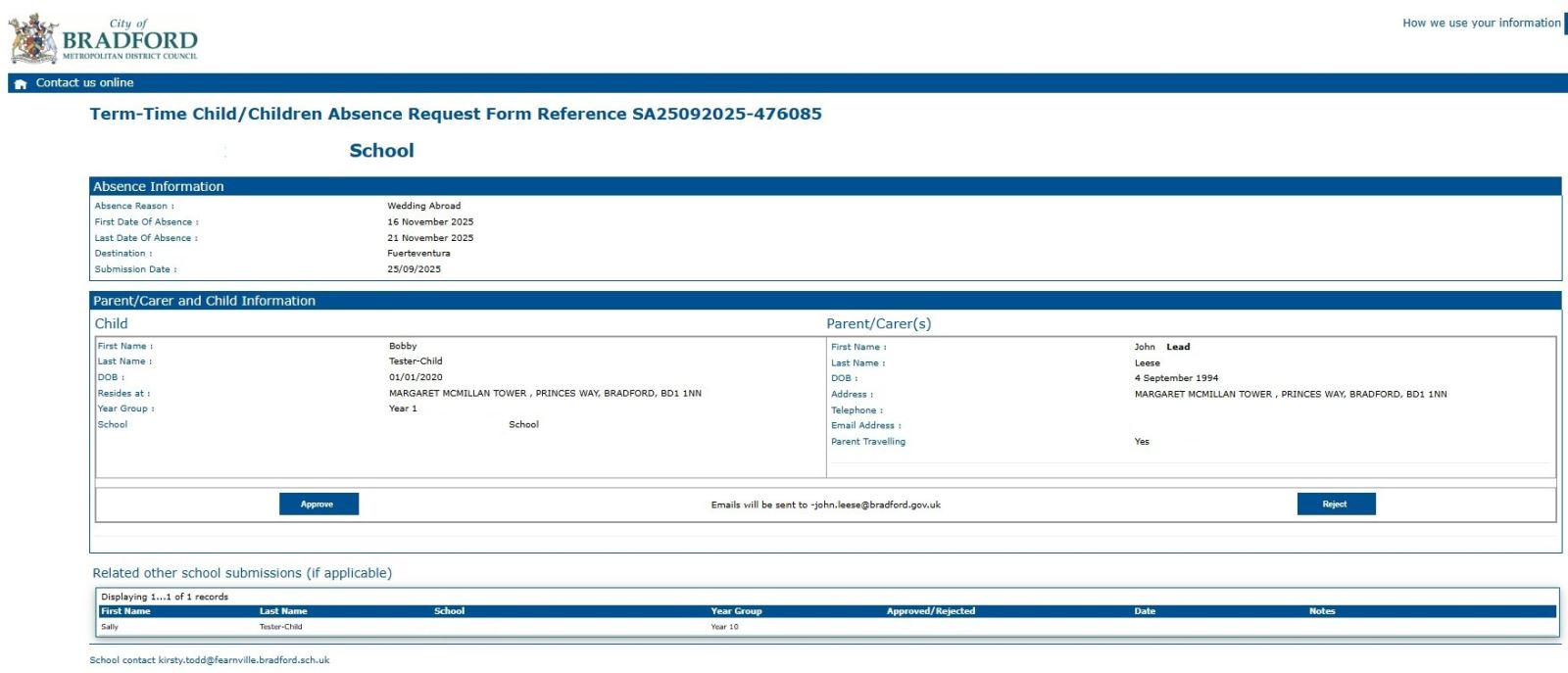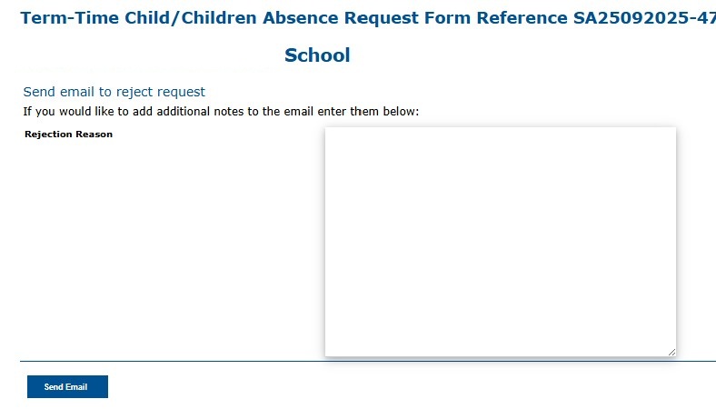 form will be sent back to the parent, as well as being automatically forwarded on to each school for their consideration. Schools can then decide whether to approve or reject the request, which triggers an email to the parent letting them know the outcome,