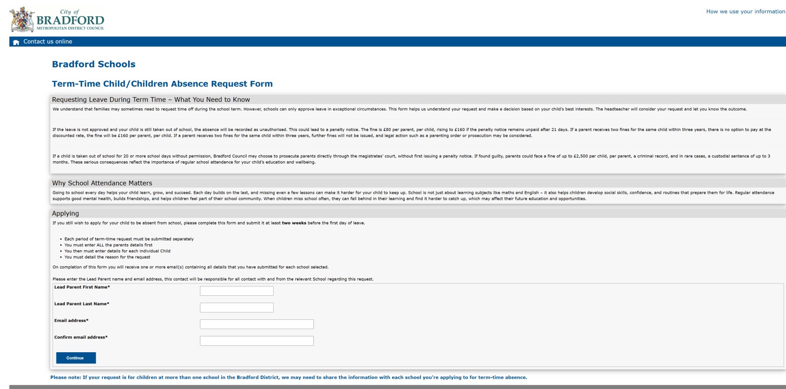 The aim of this is to ease the administrative burden on schools from having to process these requests, its easier for parents as they only need complete one request form for their family, and the council can be entirely confident that every school in Bradford