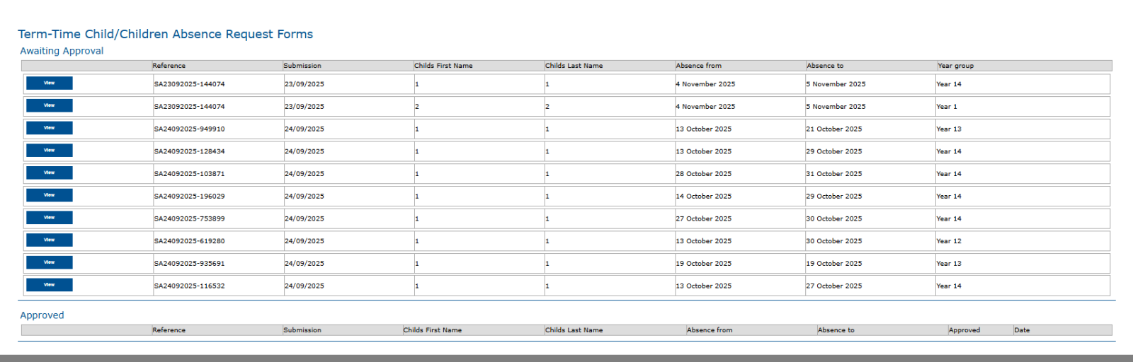 - We have set up a weekly email reminder, sent every Monday morning, that will ask schools to check their current list of requests awaiting approval. The email contains a link to a webpage that has all requests listed, both those approved and those waiting