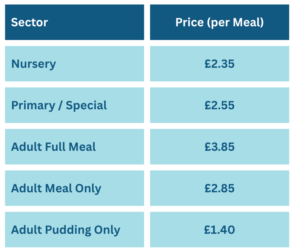 The outcome of this review is that, from Monday 3rd November 2025, the recommended minimum standard school meal prices will be as follows: