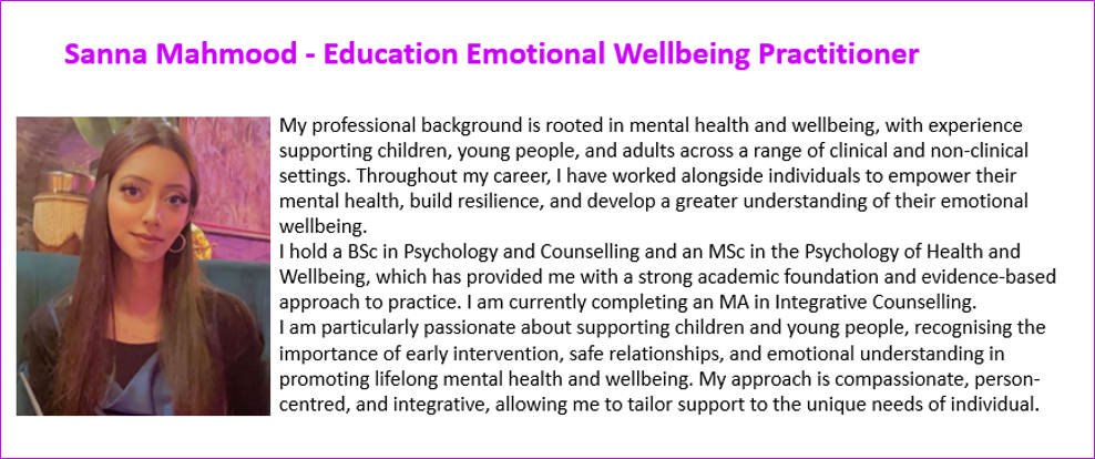 Includes: Mental Health Champion Project information, Workshops and Meetings. Mental Health Champion Parent Workshops: focusing on supporting CYP with anxiety related to perceptions of falling behind with their school work. Future topics around Mental Health and Emotional Wellbeing.