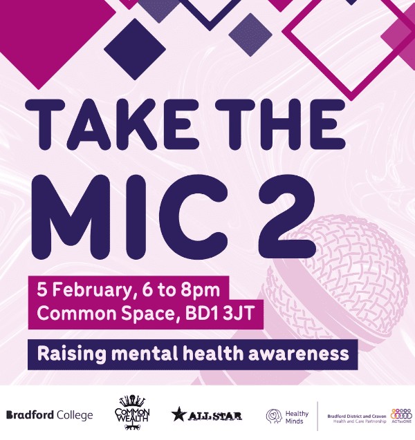 Take the Mic 2 will provide a powerful platform for self-expression and highlight the importance of mental health support. We are also promoting the Healthy Minds website (www.healthyminds.services) as your first step to mental health support in Bradford District