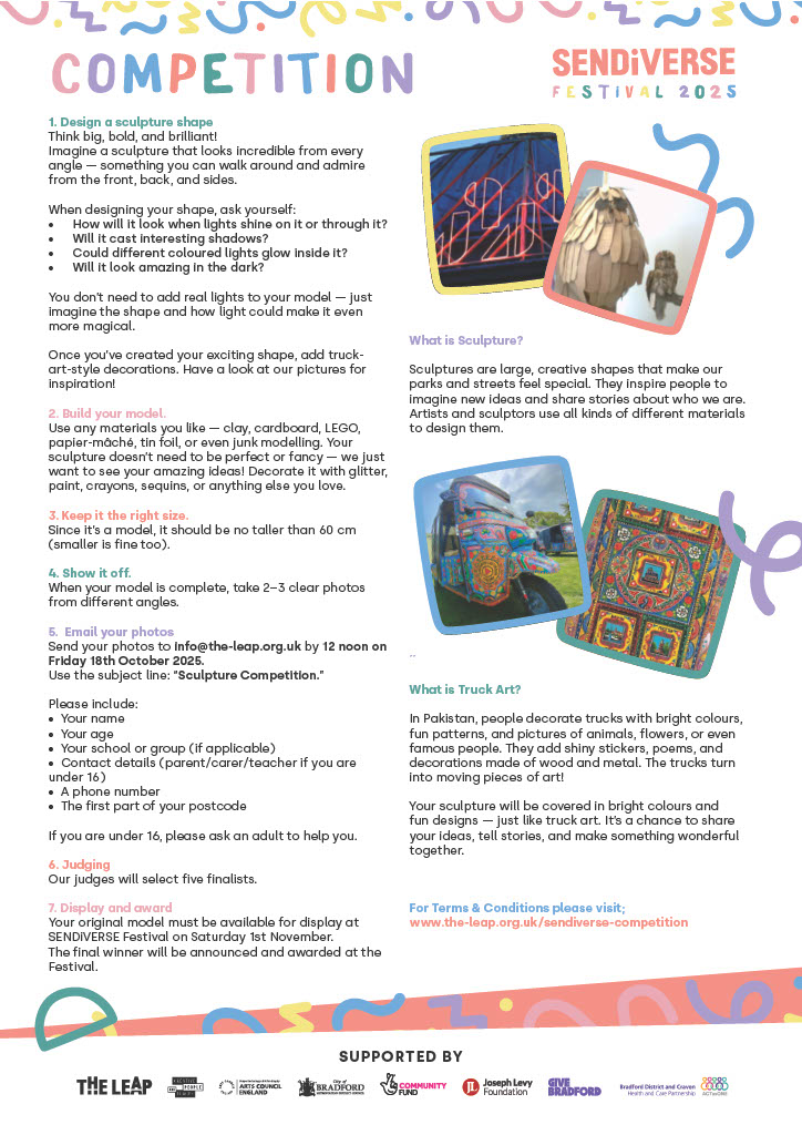 We can’t wait to see the bold, brilliant and imaginative designs that Bradford’s SEND children and young people create!