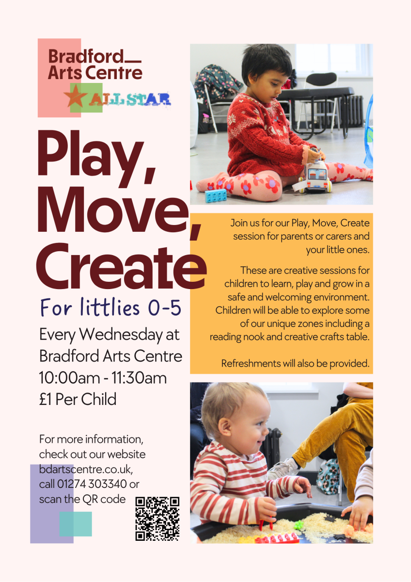 Looking for a welcoming baby and toddlers group in Bradford? Join Bradford Arts Centre and All Star for our weekly Play, Move, Create sessions, designed specifically for parents, carers, and their little ones (ages 0-5).